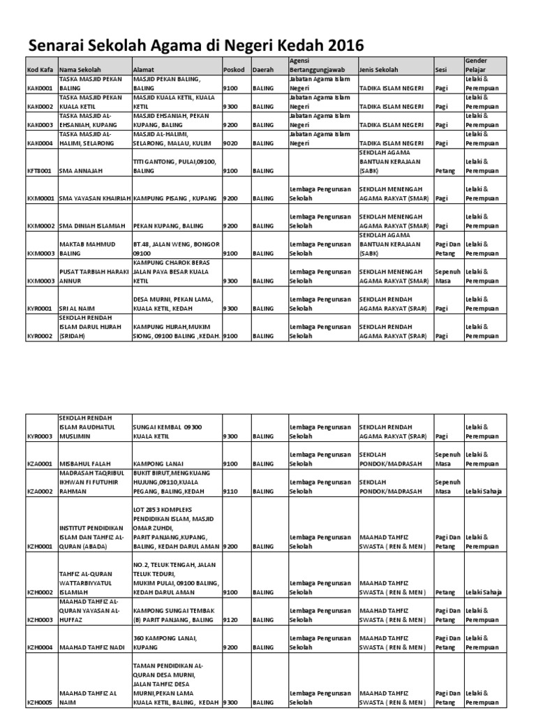 senarai sekolah agama bantuan kerajaan